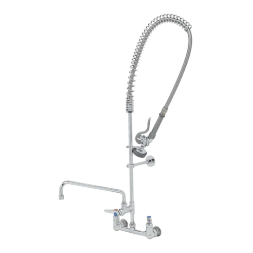 EasyInstall Pre-Rinse Unit: Spring Action, 8" Wall Mount, 12" Add-On Faucet, Wall Bracket