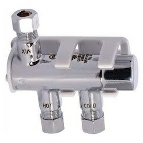 The HG135 is a sleek and compact point of use mixing valve designed to assist in the prevention of scalding. It features a superior, fast acting thermostatic element that provides stable operation at flow rates as low as 0.25 gm (0.95 pm). The Heatguard 135 also reduces the outlet flow to a trickle in the event of a cold water supply failure. The valve inlets and outlet connections are standard 3/8-in supply line compression connections for use with 3/8-in OD tube. The inlets of the valve feature check valves to prevent cross contamination as well as serviceable strainer screens to prevent the valve from being clogged with dirt or debris. Each valve includes a purpose built mounting bracket and hardware to neatly and securely fasten the valve to the wall. The compact design and pleasant aesthetics allow for this valve to easily be fit under or behind a single basin. Adjustable outlet temperature range: 100 – 120 degrees F (38-49 degrees C).